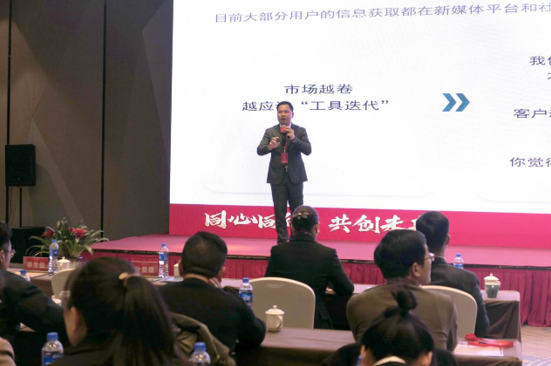 会议伊始,德意智家营销总经理阮金成对2023年丽博家居零售业务工作进行了回顾,他肯定了经销商伙伴在过去一年里的辉煌战果,并提出:市场瞬息万变、挑战近在咫尺,面对激烈的市场竞争环境,只有不断创新、变革,才能取得长久持续的发展。这就需要品牌和经销商伙伴同心同行,以品牌战略指引为方向,不断提升品牌影响力,为发展创造更大的可能性。