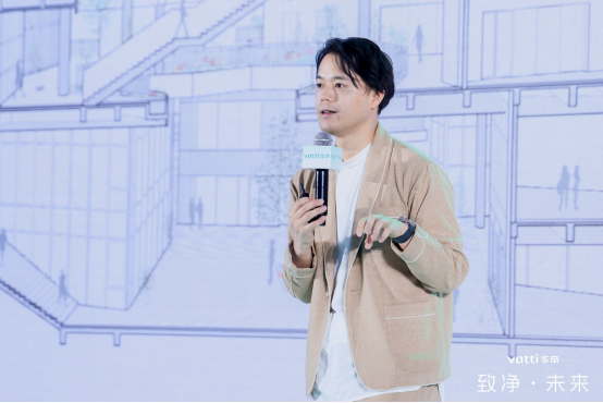 知名建筑设计师青山周平在大会上分享了以“未来生活空间”为主题的演讲。他首先提到,厨房正在从单一的功能性封闭空间,向综合性的开放社交场所转变。这一趋势下,消费者对厨房的要求则是既是好看的,也是洁净的。