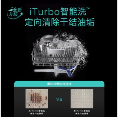 本次即将在AWE展出的重磅产品是西门子全能舱Pro洗碗机。其搭载分层喷淋系统,上层以360°旋转水流的精准涡流洗强力“扫射”不规则餐具的每个角落,轻松洗涤蒸蛋蛋羹、茶渍、红酒印等顽固污渍;下层搭载全新iTurbo智能洗科技,在不额外消耗水量的前提下,集中4倍水流在某一特定区域持续冲刷,强效去除难洗的顽固污渍,让餐盘光亮如新。
