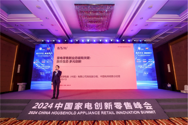 3月13日,2024中国家电创新零售峰会在上海召开。本届峰会以“多元共生,循道而行”为主题,汇聚品牌商代表、传统及新兴渠道代表、权威机构、专家学者等行业各方,共绘数字时代下的家电零售创新发展蓝图。峰会期间,博西家用电器(中国)有限公司高级副总裁、中国电商销售总经理吴澄先生作为博西家电企业代表,现场分享了博西中国在营销与渠道拓展领域的战略布局,以及近期在新模式、新业态方面进行的探索和实践成果。行业翘楚共恰创新零售与发展之机并在现场为优秀的市场营销案例进行了颁奖,博西家电凭借品牌及产品的影响力,以及针对市场和渠道的独特洞察和深入探索,获得了市场和消费者的认可。