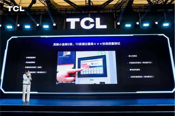 除了技术领先外,灵眸小金刚智能锁的产品质量也获得了行业的认可,在今年参加的中消会测评标准的高端品质认证(简称BG认证),联合多家头部企业参与测评。在本次测评中我们的TCL灵眸小金刚9系和10系分别从性能、功能、消费体验等数十项测评指标进行评测,包括指纹识别率、锁舌静压力、耐久度、电池容量、高低温盐雾环境适应性、静音、开锁速度等检测项目中的评价均达到最高的三星等级,荣获BG产品认证证书,代表着TCL智能锁产品无论是在功能体验上、还是在质量安全上都是达到了行业最高水平是行业高端品质的代表之作。帮助消费者更直观、放心选购更安全、可靠的产品提供依据。