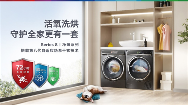 新品洗烘套装不仅包含拥有超强除菌洁净能力的洗衣机,更有功能强大的干衣机,加乘衣物洗净及烘干效果,为消费者打造更高效、更人性化的全方位洗烘体验。