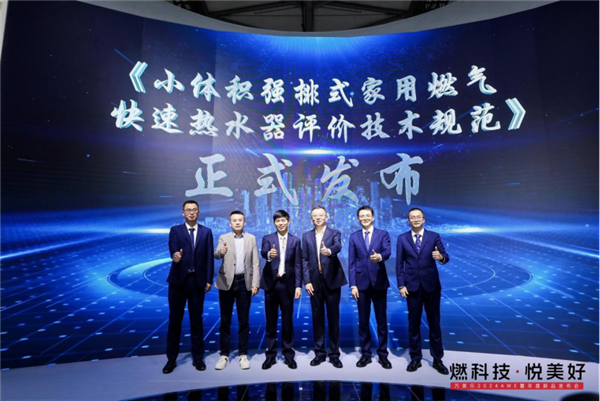 在此次展会上,万家乐再一次主导行业团体标准的制定,重磅发布《小体积强排式家用燃气快速热水器评级技术规范》标准(以下简称“标准”)。该标准填补了燃气热水器领域体积标准的空白,引领行业创新变革。