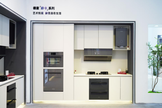 本次展会,德意电器以“德意六件套”为主题,贯穿全线产品,涵盖了大风压烟机、大火力燃气灶、除氯燃气热水器、蒸烤一体机、洗碗机、消毒柜六大产品,结合三tai集成灶领航者系列,引入了丽博家居「君悦」厨房场景,实现了美学、科技、健康、场景的全面进阶,为观展者提供了一个全新的厨房体验。