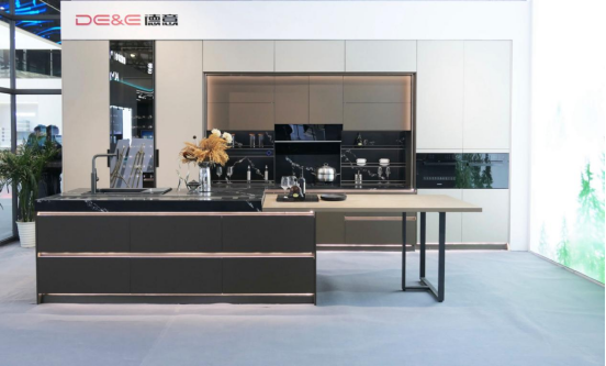 本次AWE展,德意电器和丽博家居依然联合共进,双品牌齐发,也展现着行业内独一无二的“橱电一体化”的品牌价值。丽博家居「君悦」厨房的展出,让整体性不再是“橱柜+厨电+配件”的简单叠加,而是以场景化方式呈现,让人们看到一个更适合中国家庭的厨房。