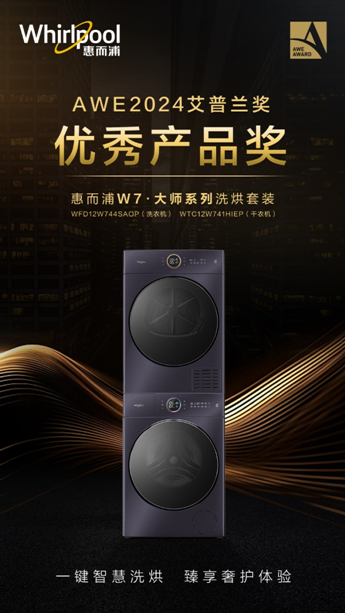 百年国际家电品牌惠而浦携一系列明星产品赴约AWE2024.W7·大师系列洗烘套装深刻诠释智慧洗烘高品质体验,经过多轮筛选,将备受瞩目的艾普兰奖优秀产品奖收入囊中。