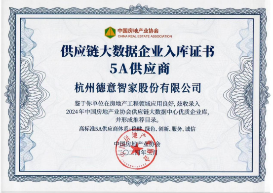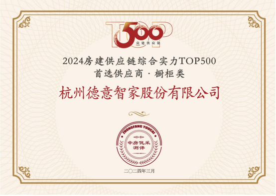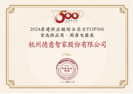 近日,《2024房建供应链企业综合实力TOP500-首选供应商服务商品牌测评研究报告》新鲜出炉,德意智家凭借领先的综合实力,荣登厨房电器类TOP3、橱柜类TOP4榜单,并被授予“5A供应商”认证。
