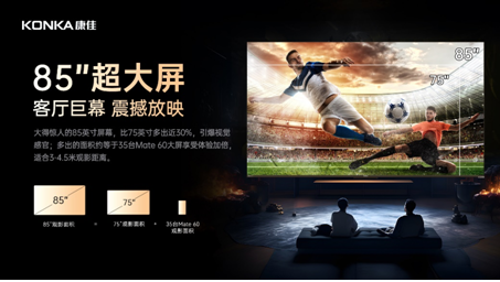 随着家庭娱乐需求的增长和技术的发展,超大尺寸电视的市场需求逐渐增长。消费者希望能够在家中获得影院级的观影体验,因此对于85英寸及以上超大尺寸电视的需求在不断增加。奥维云网(AVC)推总数据显示,2023年中国彩电市场85英寸大尺寸产品零售量和零售额实现全面增长,2023年85英寸零售量同比增长111.4%,零售额同比增长76.6%。康佳近日所推出的E9H与G9H系列新品,均拥有85英寸产品线,能够充分满足不同人群对于大尺寸电视的需求。