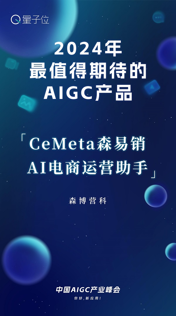 在应用层,基于对商业场景的理解、融入实际工作流,开发三大AI营销产品。此次入选“2024年最值得期待的AIGC产品”的森易销AI电商运营助手,主要针对企业在电商运营中商品图片、视频素材需求量大、制作成本高、效率低的问题,同时难以根据数据反馈,快速优化并替换素材。森易销的AI图片和AI视频两大核心功能,可以实现电商营销素材自动生成、自动发布、自动优化的闭环,持续提升ROI。