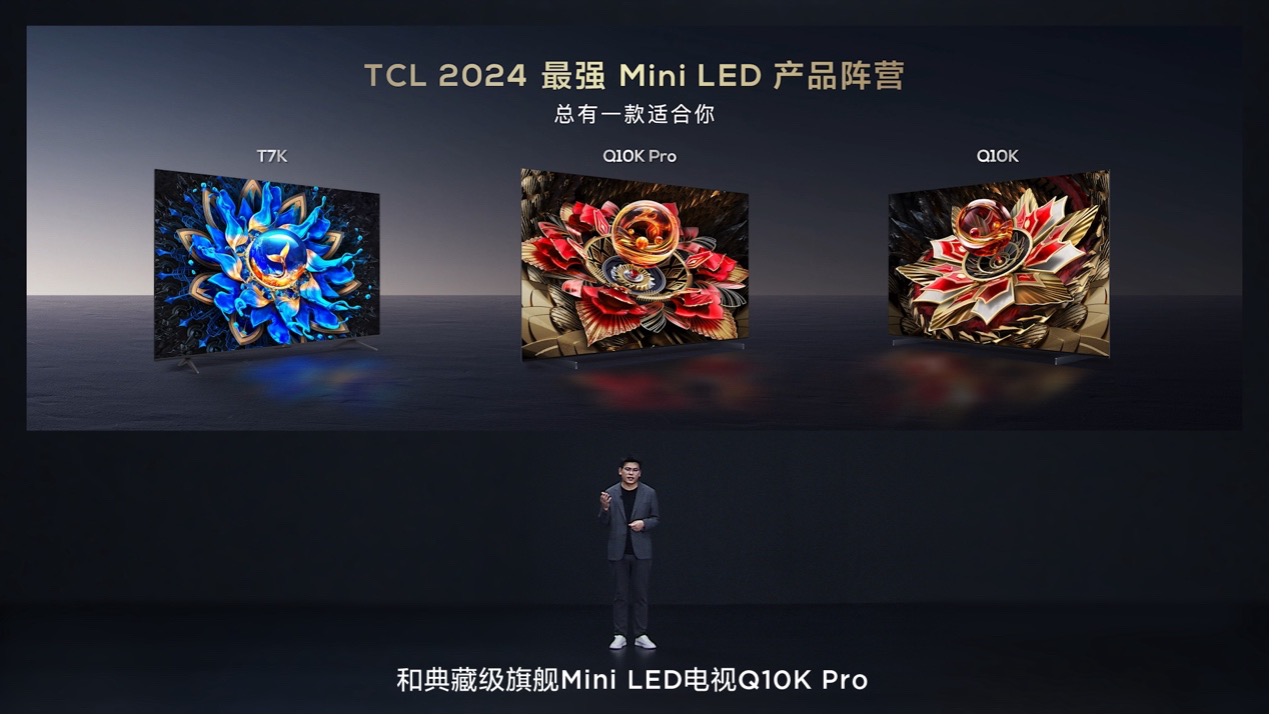发布会上,TCL连发了3款全新王炸级Mini LED电视产品,分别是典藏级Mini LED电视Q10K 、真XDR高画质Mini LED电视 T7K、以及线上唯一超旗舰电视产品:典藏级旗舰Mini LED电视Q10K Pro。三大产品覆盖了55/65/75/85/98五个尺寸,并在迭代升级的基础上全部实现“加量不加价”,真正做到了突破Mini LED质价比极限,TCL强大的创新力和市场影响力再次震撼了整个行业。