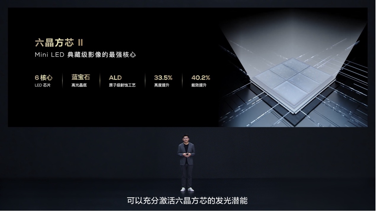 在发光芯片上,Q10K升级为六晶方芯II作为Mini LED的发光光源,发光面积是普通灯芯的6倍,材料工艺更稳定,亮度更高、能效更高、耐用度更高。
