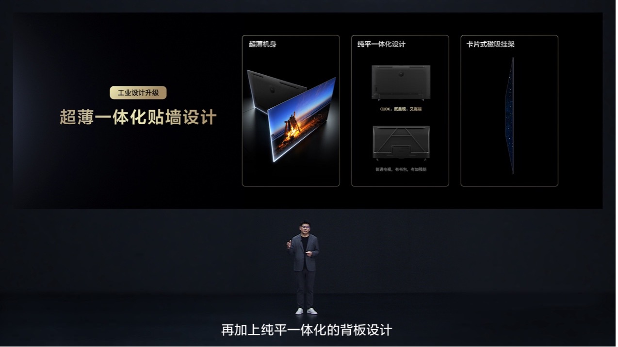 科技向美而生,旗舰产品不仅音画要旗舰,工业设计一样也要符合它的旗舰气质,在外观方面,Q10K也是妥妥的旗舰级别。得易于微距OD的设计,Q10K的机身厚度仅为普通电视的一半,而且背部纯平一体,可以无缝隙贴墙,能完美融入家居环境。此外,Q10K整个背部铺满了Mini LED星空纹理,搭配引力星环重低音设计,光线流转之间,宛若进入万象星河的璀璨星空,看着美感十足,质感爆棚。