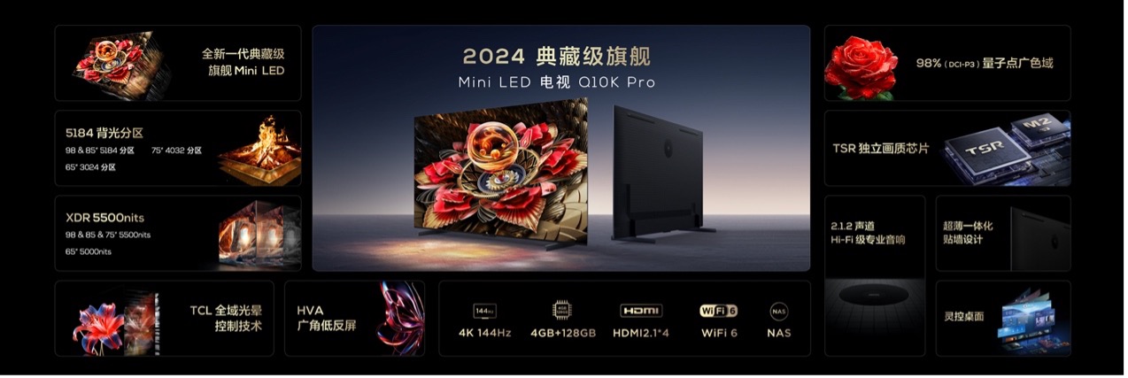 在本次发布会上,TCL发布的最重量级新品,莫过于典藏级旗舰Mini LED电视——Q10K Pro,也是目前线上唯一一款超旗舰产品。