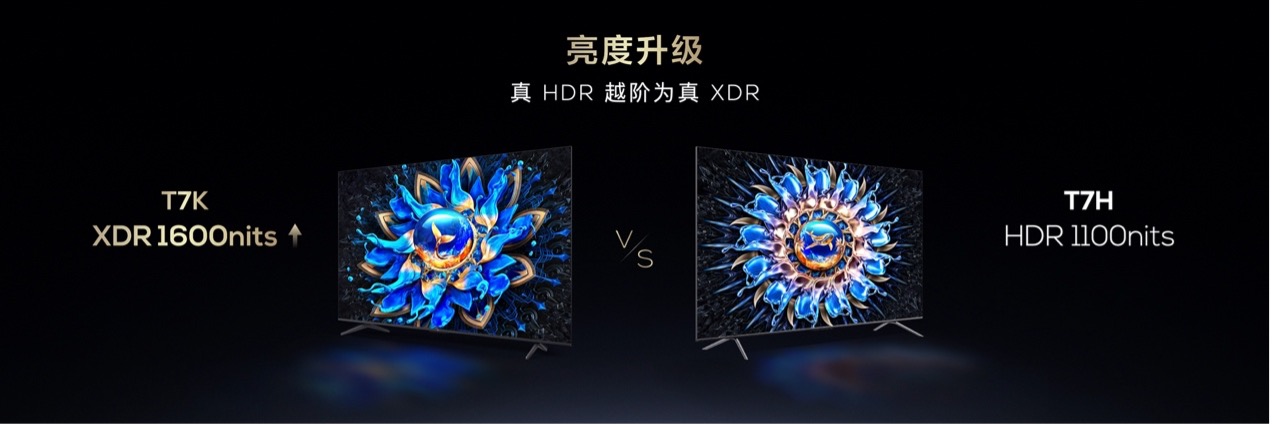 在亮度方面,T7K由上一代产品T7H的HDR 1100nits提升到XDR 1600nits。这不仅仅是数字的变化,而是从HDR升级到XDR,整整一个标准的跨越,可以实现更高的动态范围,色彩细节更加丰富。