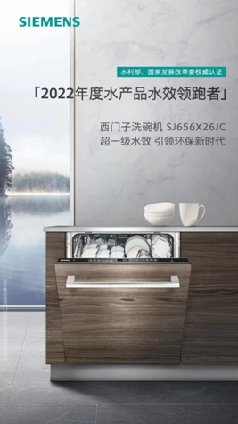 针对消费者对“机洗”和“手洗”的用水量对比顾虑,西门子洗碗机持续以智能科技优化节水效果,采用的智感油污探测器精准识别餐具的脏污程度,减少了不必要的用水和能源消耗。另有相关数据显示,实现在清洗相同数量餐具的前提下,西门子洗碗机相较手洗至多可节省60L水[3]。西门子洗碗机SJ656X26JC更是以优于国家一级水效标准的超一级水效,荣获国家“2022年度水产品水效领跑者”。