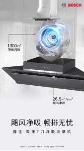 博世致薄T刀净吸油烟机的飓风净吸功能完美回应了这一痛点:产品搭载德系原厂变频电机,澎湃动力驱动下风速3可达26.5m3/min,短时间内以强力飓风快速吸净油烟,无论是还是猛火爆炒还是文火炖煮,都能够实现“油烟不上脸、爆炒不呛鼻”,为消费者解锁更自在、舒心的“无烟”烹饪体验。此外,产品风压高达1300Pa4,身居不同楼层皆可一路排烟到底,畅通无阻。