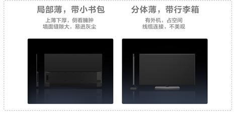 图|电视主流机型都并不是完美形态:局部薄、分体薄
