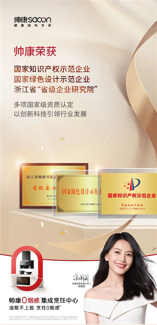 过去四十年,帅康作为健康厨电专家,一直以来致力于技术创新和产品研发,不断推出引领行业发展的创新产品。此次获得“国家知识产权示范企业”和“国家绿色设计示范企业”的资质认定,不仅是对帅康多年来在知识产权保护和绿色设计方面的积极探索和实践的肯定,更是对其未来发展的鞭策和鼓励。