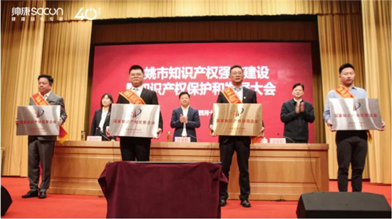 据悉,2024年4月18日,余姚市市长沃勇特亲自颁发荣誉奖牌,以表彰帅康在知识产权领域所取得的杰出成就。这也是余姚市第二家获得知识产权领域国家级最高殊荣的企业,2023年度余姚市仅帅康一家获此殊荣。