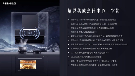 我们深知,厨房不仅是烹饪的场所,更是家的温暖所在。然而,油烟困扰、空间狭小、清洁繁琐等厨房痛点,常常影响着烹饪的乐趣。培恩集成灶洞察这些需求,以创新科技为驱动,提供强效吸烟、空间优化、智能清洁等解决方案,让厨房成为真正温馨、健康、便捷的生活空间。培恩集成灶,以用户为中心,推出全新力作——培恩集成烹饪中心·空影,一款集多功能、智能化、空间优化于一体的厨电科技产品,致力于让烹饪变得简单而美好,让厨房成为每个家庭的幸福源泉。