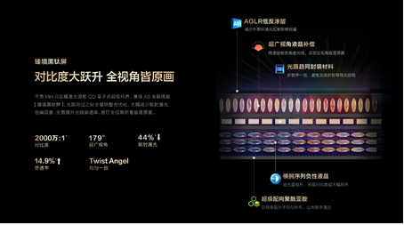 A8 Pro全新配备臻境黑钛屏,以散射系数更低的负性液晶为屏体核心,通过聚酰亚胺引导液晶分子按横舸序列高精度均匀排布,让更多光线顺畅穿透,亮部更亮暗部更暗,对比度大幅跃升;精心调配折射率与屏体高度一致的封装材料,避免屏内反射造成光路损耗,额外增配液晶补偿膜,以实现全视角光线的精准控制,从而确保用户在不同角度观看时,都能获得原画级别的视觉体验。