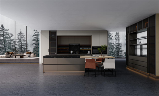 人生的真谛不在遥不可及的地方,而在于日常的点滴之中。宽敞通透的开放式厨房,不仅承载着日常烟火,更是居住者释放自我,还原生活本真的空间,岛台的融入,勾勒出温馨的生活场景,带来无边的自由感。好友来访,这里可作为与朋友分享个人品位的社交空间,会带给人意料之外的惊喜。