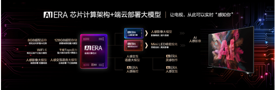 康佳A8系列搭载了康佳自主研发的业内首款智能平台——“AI ERA人感大模型”生态平台,拥有千级Tops端云全局算力,借助一颗高效的全局计算芯片,协同人感影像引擎和精控背光芯片,实现了在电视端侧部署轻量化的人感影像大模型,并在云端部署了具备千亿级参数的人感交互语音大模型。同时,该产品配备的8GB超配运存,能够轻松应对多重AI任务,而Wi-Fi 6技术的加持则进一步确保了与云端大模型的连接更为畅速丝滑。这些先进的技术特性共同赋予了康佳A8系列更强大的人感交互能力,为用户带来卓越的使用体验。