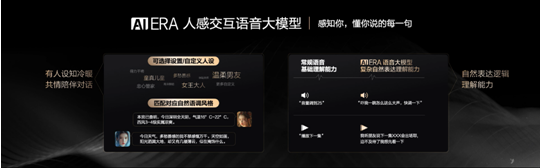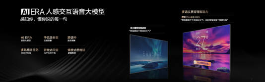 我们过去常常借助一种相对机械且标准化的沟通方式来操控电视,对它发出“音量调到25”,或者“播放下一集”等指令,然而这种方式并不符合大多数用户日常的语言习惯。而AI ERA可以很轻松理解到我们自然表达的复杂逻辑,比如当它听到“哎呀,那么大声吓我一跳”,或者“这集很无聊,还不如跳过看下一集”,大模型就会感知理解我们的真实意图并进行相应处理。简单来说,更像一个懂你的朋友,能听懂你的所有表达。它还可以是你的一位有趣的朋友,可以自定义温柔男友、高冷御姐、忠心管家、童真可爱等多种角色,与你进行互动对话,为你的日常生活增添更多趣味。