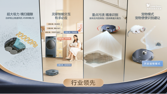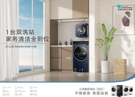 作为专业的国民家电品牌,小天鹅敏锐洞察用户对洗护和清洁不同生活场景下的功能诉求,推出双洗站MAX新品,将扫地机、洗地机、洗烘套装、护理机、衣物消毒机、除毛屑神器等6大品类进行融合,以集成化创新,重构家居生活新秩序。其凭借“纯平全嵌、集成省空间、一机顶多机”三大核心突破,打造全场景家居清洁一站式解决方案,做到洗衣扫拖,一部到位,诠释出“不做家务、体面由我”的新主张。