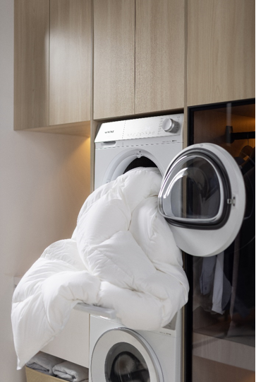 一般来说,普通烘干机只适用于耐高温材质衣物,丝绸、缎面、羊毛等都市精英日常着装所需的高端面料未得到高度关注。西门子小晶钻洗烘套装干衣机洞悉不同材质的衣物所需护理方式不同,针对高端面料专研多个烘干程序。针对羽绒服水洗结块的难题,该款干衣机以285立方米/小时的大风量,进行无死角低温柔烘,让羽绒更蓬松,同时避免开胶和衣物标识脱落的风险。考虑到中国消费者的生活习惯,该产品还创造性开发了蚕丝被护理程序,去除被褥湿气、保持蚕丝活性,让消费者在家就能享受专业级服务。