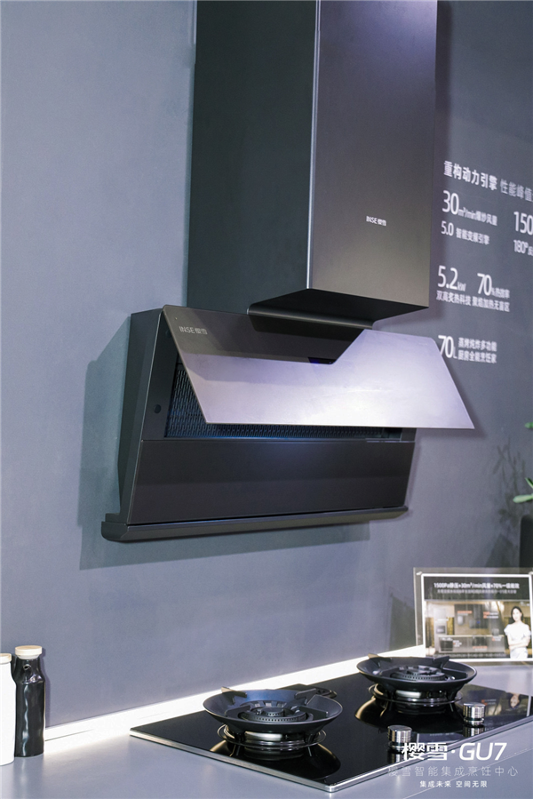 在展会上,樱雪品牌的集成烹饪中心GU7成为了众人瞩目的焦点,不仅完美契合了当下家居集成、大风量、大风压的设计潮流,更以其独特的魅力,引领着厨房烹饪的新风尚。