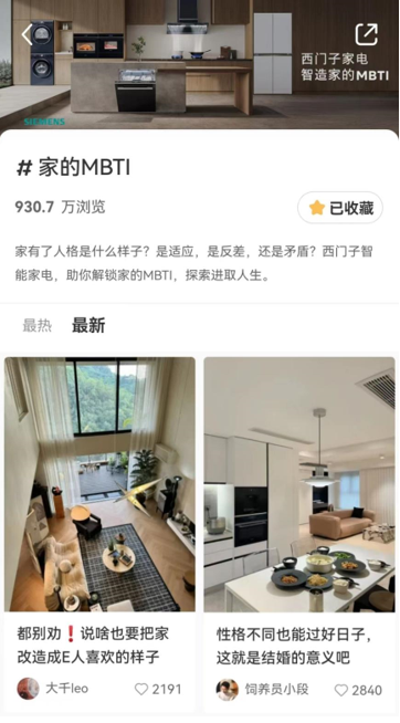 MBTI火爆的背后,是90后乃至更广泛年轻群体对自我认同和个性化生活方式的不懈追求。聚焦这一现象后的深层次需求,西门子家电创造性地将MBTI人格理论与家居设计相结合,推出了“家的MBTI”这一主题,通过社交平台上的互动话题,激发起了一股前所未有的家居改造热潮。