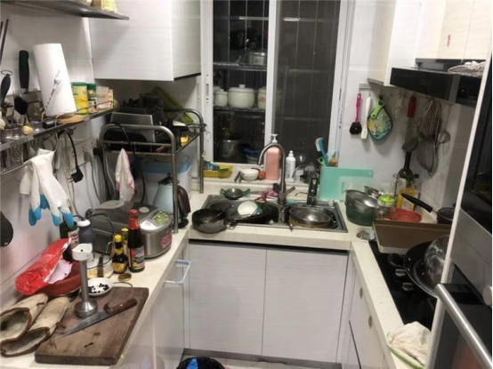 光线昏暗、柜体潮湿、布局混乱、油腻不堪