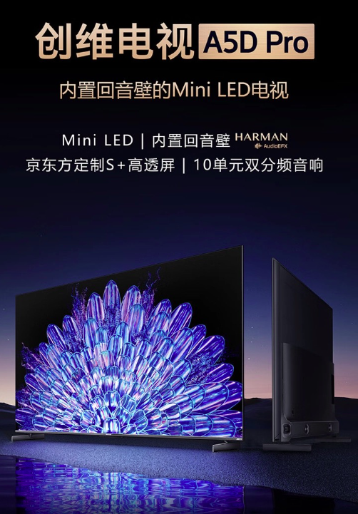 最具观影沉浸感的Mini LED电视:创维A5D Pro内置回音壁 众所周知,之所以选购Mini LED电视,根本原因在于希望得到更好的观影体验。然而电视市场技术卖点复杂,用户决策成本高。更重要的是,声音本就是观影的重要组成部分。当前Mini LED电视的现状是绝大部分产品都把精力放在了卷分区、卷亮度等画质参数上,无法真正满足音画一体的家庭影院的需求。一台Mini LED电视即便分区再多、画质再好,但声音单薄、缺乏层次,无法在听觉上满足用户时,其观影体验也会大打折扣。