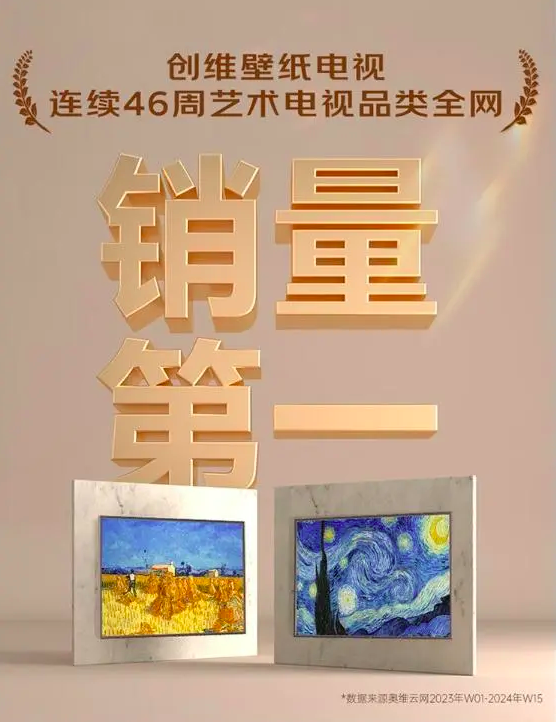 而在艺术电视这一赛道,创维是当之无愧的头号玩家。区别于普通电视,超薄无缝贴墙的独特设计以及隐藏式布线,让创维壁纸电视可以像画框一般贴合于墙面,更加美观,同时搭载了百变艺术屏,融合各种风格的家装设计。据奥维云网2023年W01-2024年W15数据显示,创维壁纸电视连续46周获全网艺术电视品类销量榜首,不仅彰显了其强大的市场竞争力,更是赢得了广大消费者的热烈追捧和广泛赞誉。
