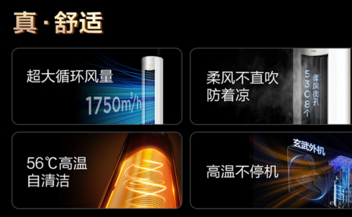 据介绍,TCL真省电Pro柜机开机30秒即可进入工作状态,实现快速制冷,并首创185mm的行业超宽大出风口,升级新一代风道技术,搭配1750m³/h的超大循环风量,10m超远送风,能够快速将室内空气进行流通和交换,冷风均匀地吹到室内每个角落。