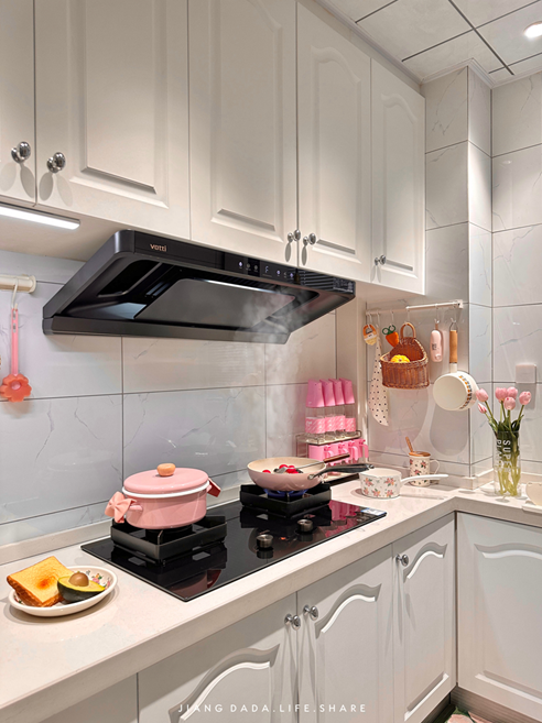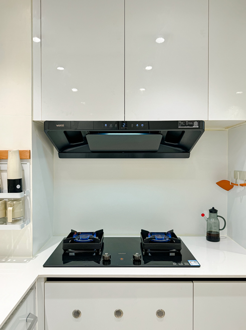 S36的正面面板仅5cm, 1.2cm超薄边框实现了更大的拢烟腔面积,搭配黑灰色机身、圆角工艺和极简设计,看上去百搭又高级,无论是嵌入安装还是独立安装都好看,满足理想厨房空间的高颜值标准,让厨房赏心悦目。
