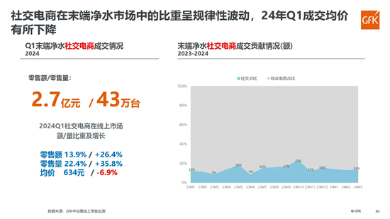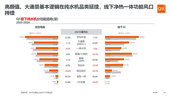 GfK中怡康相关数据显示,从一季度市场表现来看,大通量、便捷以及健康饮水等需求点带动了净水产品的增长,个性化、精细化、高端化的趋势进一步凸显,净水市场正在进入新的周期。