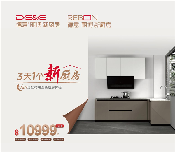 丽博家居联合德意电器共同推出的“三天一个新厨房”活动仍在如火如荼进行中,618特惠价9999元起,标准套餐直降1000元!从旧橱拆除、垃圾清运、新橱安装到厨房保洁一站服务,为你焕新地柜、吊柜、石英石台面、烟机、灶具、水槽、龙头……无需搬家,轻松搞定!