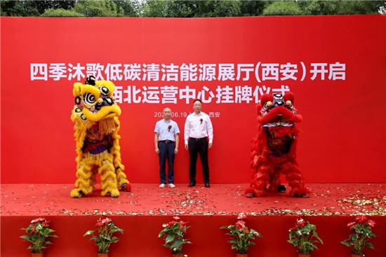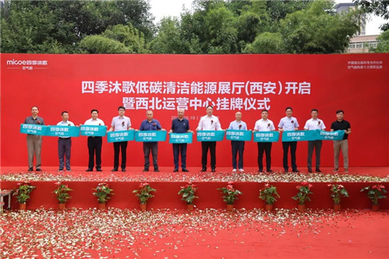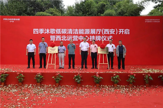在庄重而热烈的气氛中,四季沐歌低碳清洁能源展厅(西安)暨西北运营中心挂牌剪彩仪式隆重举行。