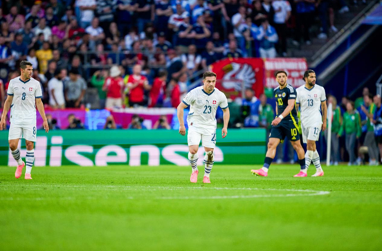 在对阵苏格兰的欧洲杯小组赛中,开局球队0-1落后,瑞士队很快发起反击但队友的传球力度不够,皮球将将传到了苏格兰后卫的身后就停止了滚动,接球球员如果按照常理趟球,很容易就会被另一个协防的后卫逼住,而错失良机。