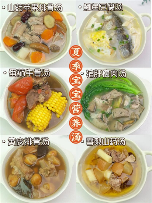 夏天不太适宜喝过于油腻的汤,可以炖一些清淡点的,比如绿豆南瓜汤、薏米红豆汤、山药芙蓉汤、冬瓜排骨汤,鱼头豆腐汤、笋尖老鸭汤等等,或者在炎炎夏日来一碗银耳莲子羹,也是不错的选择,清热解毒、养心安神。