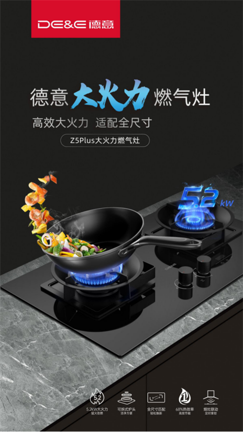 德意大火力燃气灶,搭载了德意POWER大火力燃烧科技,可以实现5.2kW强劲火力,而且火力大小可以精准控制,大火够猛,小火够稳,有效保障食材的水分和营养不流失,做出来的汤口感更好,味美又营养,轻轻松松干掉三碗!