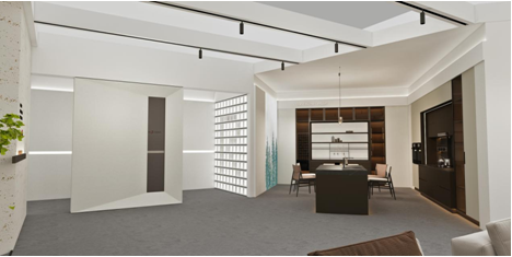 丽博本次展馆的设计,以真实生活场景为设计核心,通过设计、色彩、工艺、性能多维演绎,全面升级,势必将以盛放之姿惊艳众人。设计师在视觉塑造、动线配置以及空间呈现方面都做了恰到好处的协调,通过「君悦」橱柜、电视柜、衣帽间,「澜山」橱柜、书房等空间展示,丽博S级板材丽肤板、格林板、源木板的呈现,从空间与生活的交融里,呈现出轻高定产品的美学体验。