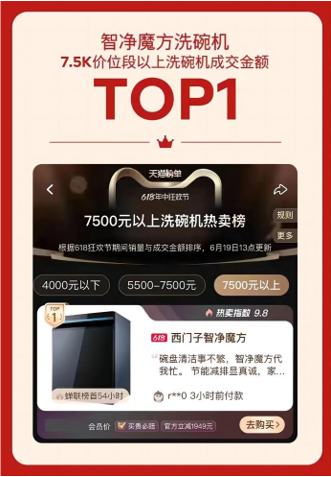西门子家电在京东平台推出的黑魔镜洗碗机,此次618同样取得了令人瞩目的成绩。这款产品凭借其卓越的智能科技和高效烘干功能,荣登京东平台全价位段洗碗机成交金额榜首的宝座,销量超过10000台。西门子黑魔镜洗碗机的智能开门烘干技术和专利洗涤系统深受消费者喜爱,其高效清洁与智能操作更是让用户体验得到了极大提升。