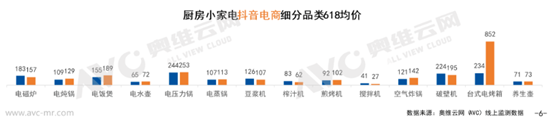 根据奥维云网(AVC)监测数据显示,2024年618,厨房小家电(电饭煲、电磁炉、电压力锅、豆浆机、破壁机、搅拌机、榨汁机、电水壶、煎烤机、电蒸锅、电炖锅、养生壶、空气炸锅)全品类线上渠道(传统+抖音)零售额规模为32.8亿元,同比下降10.3%