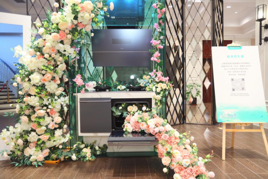 鲜花与美食,不仅能充分调动情绪和味蕾,治愈心灵,也象征着强烈的生活仪式感。本次私享会的环境布置颇有意趣,华帝以产品的时尚美学和青草、繁花的自然生命力相结合,打造出一个充满活力的花园,处处可见生活美学的气息。