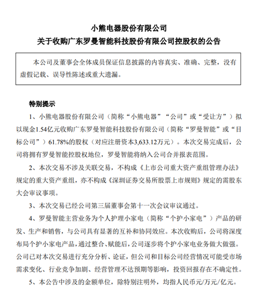 特别是对于小熊电器而言,一方面在国内市场拓展了品类,形成了更加丰富和完备的产品矩阵;另一方面借助罗曼智能向海外进行业务拓展,进一步扩大小熊在海外的版图,提升在海外的市场占比。