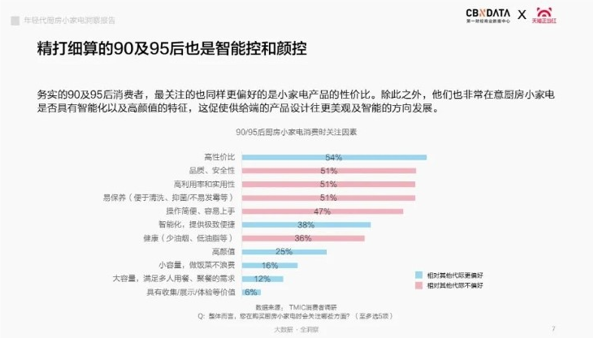 据《年轻代厨房小家电洞察报告》显示,现代年轻群体对小家电消费需求偏好更加多元化、场景化,有51%的用户注重产品品质感和实用性,38%的用户注重智能化、便捷化体验,25%的用户比较关注产品的高颜值。从数据不难看出,当下的年轻人对家电产品的品质、便捷操控体验、以及外观设计等成为选购的重要因素。