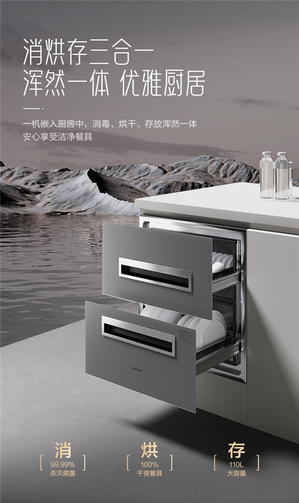 随着梅雨季的深入,从“入梅”至“出梅”,樱花窈窕系列消毒柜SCQ-110T530始终默默守护着每个家庭的每一餐。它以高效的消毒烘干技术和贴心的智能设计,让餐具在梅雨的潮湿中依然保持干爽无菌,彻底解决了人们对梅雨季节餐具存储的烦恼。
